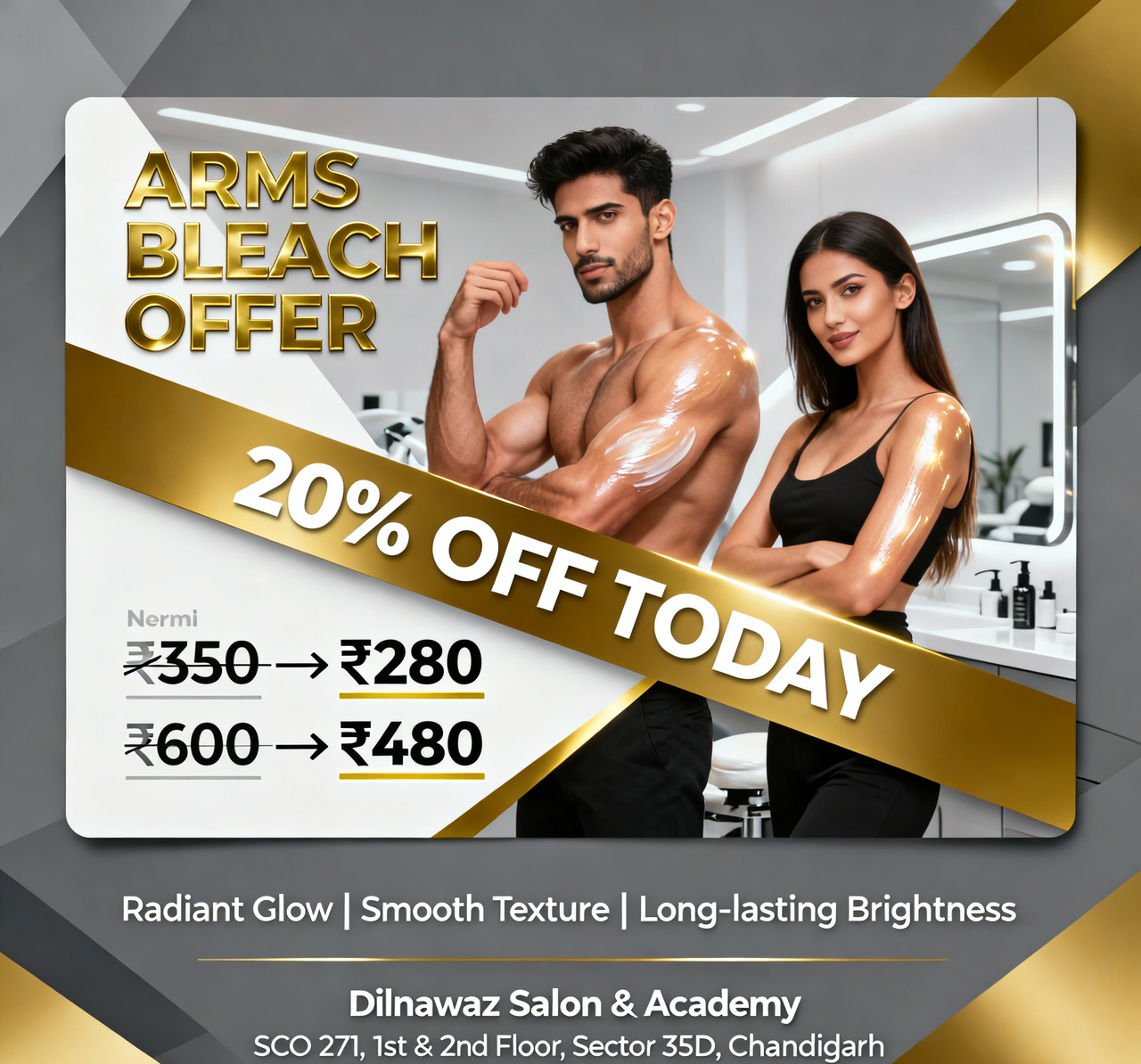 Get radiant, smooth & brighter arms with our professional bleach treatment. Safe & effective for both men & women — perfect for wedding prep, Haldi, reception glow, party look or everyday confidence.