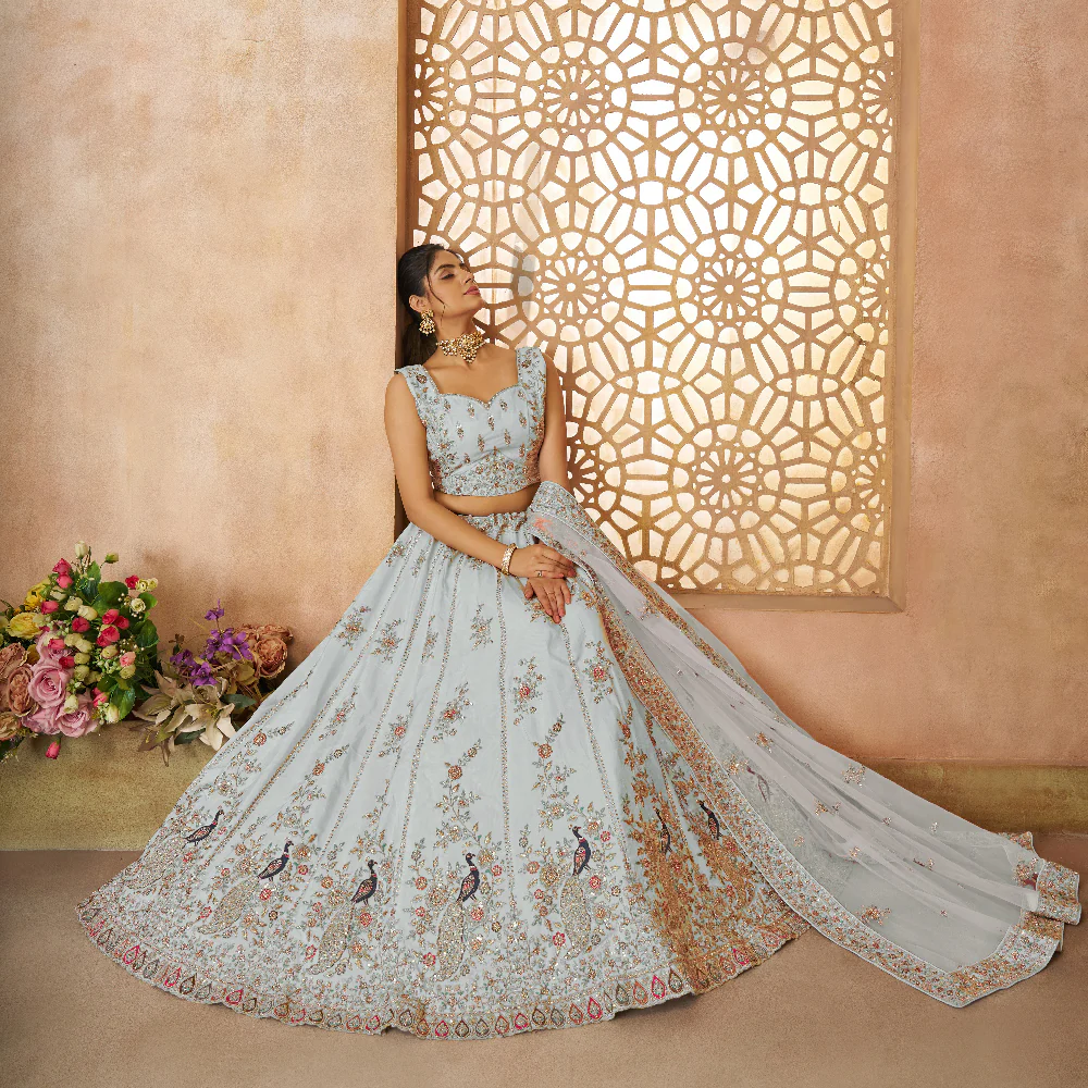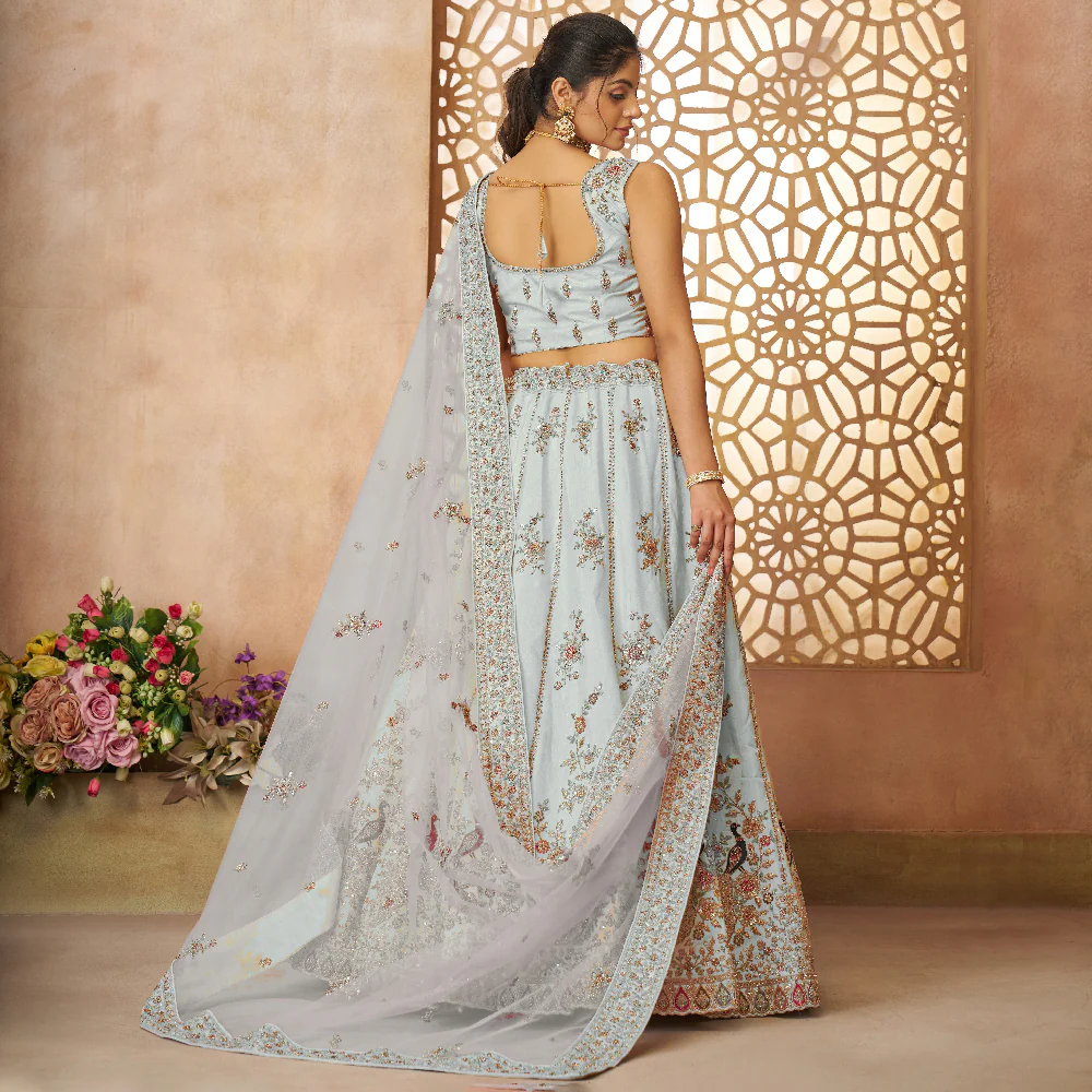 🌟 Beautiful Sky Blue Sequins Chinon Reception Wear Lehenga Choli 🌟
