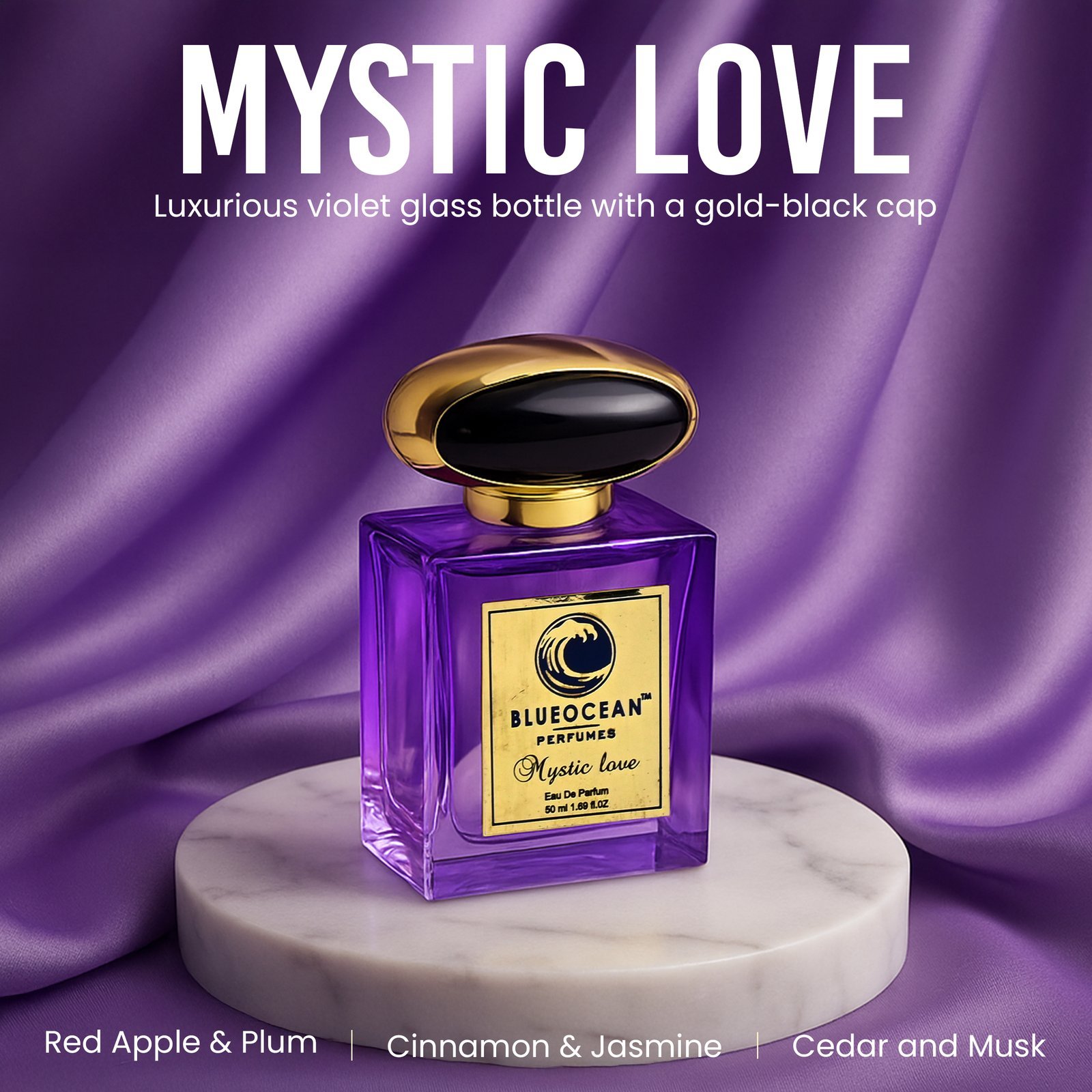 Indulge in the BlueOcean Mystic Love Eau De Parfum, a unisex fragrance crafted to suit all, blending bold and romantic tones for versatile wear day or night. This 50ml perfume spray features a luxurious scent profile that evolves from fresh opening notes to a warm heart, finishing with a deep, elegant base.