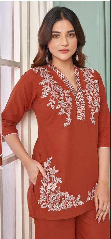🌸 Cambric Cotton with Embroidery Work Kurti and Bottom Set