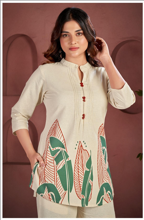 Elevate your everyday look with the Cotton Flex Print Kurti and Bottom Set, a versatile ensemble featuring vibrant flex prints for a chic appeal. Crafted from soft cotton flex fabric, it offers a comfortable fit and smooth drape, perfect for casual and festive occasions. Available in sizes M (38), L (40), XL (42), and 2XL (44) for a personalized fit.