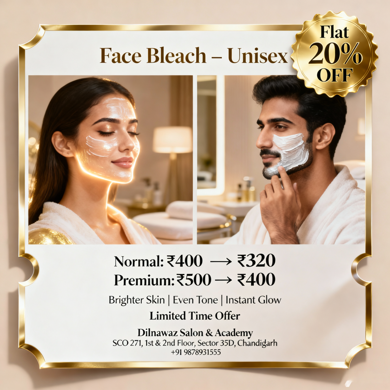 Offer valid for a limited time only! Book your slot now at Dilnawaz Salon & Academy.