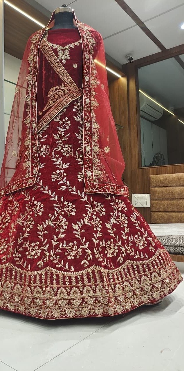 Offered in XS–XXL, this set features intricate threadwork, soft lining, and semi-stitched tailoring for easy fitting.