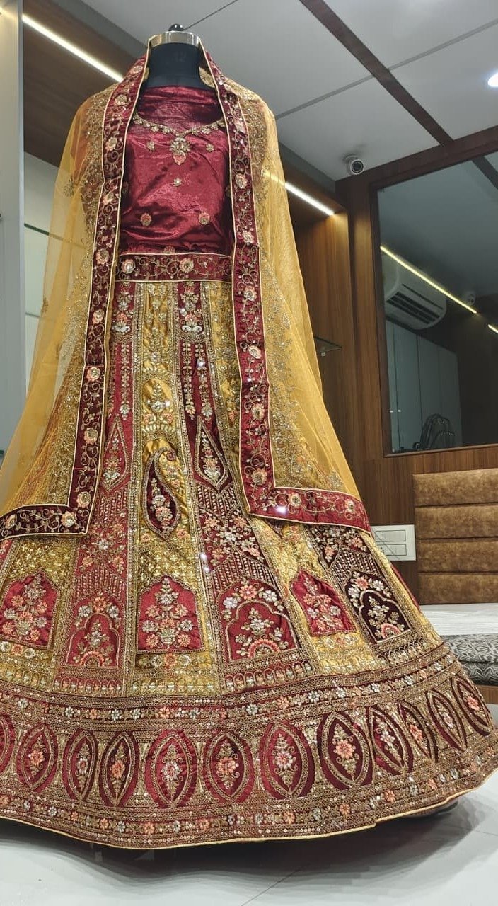Enjoy timeless sophistication in this graceful lehnga set, available for all sizes (XS–XXL).