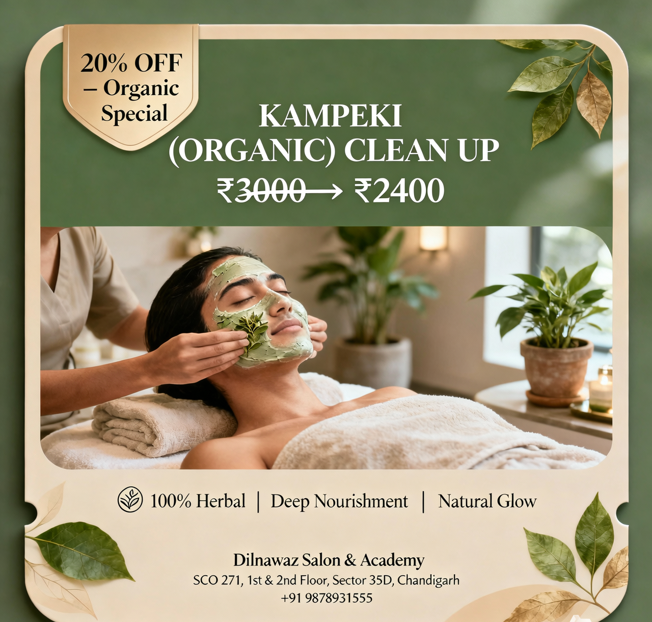 Indulge in pure, 100% herbal pampering with our luxurious Kampkeki Organic Clean Up — a deep-nourishing, all-natural facial that uses organic ingredients to detoxify, hydrate, and revive your skin. Perfect for both men & women — ideal for pre-wedding glow, bridal prep, Haldi ceremony, reception radiance, or to treat your skin to gentle, chemical-free care.