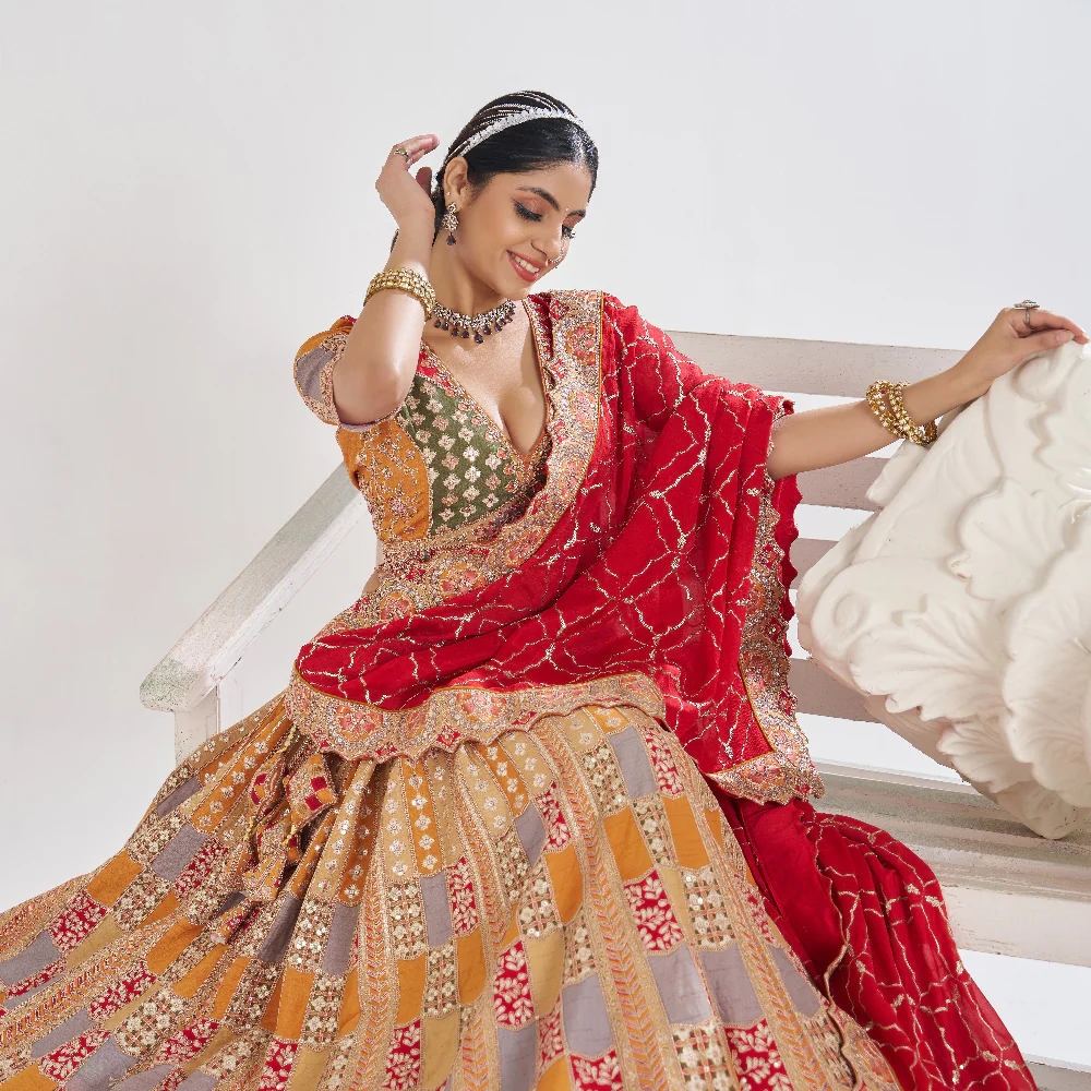 📏 Lehenga: 4m Banarasi Silk | Dupatta: 2.3m Banarasi Silk | Blouse: 1.2m Soft Net
