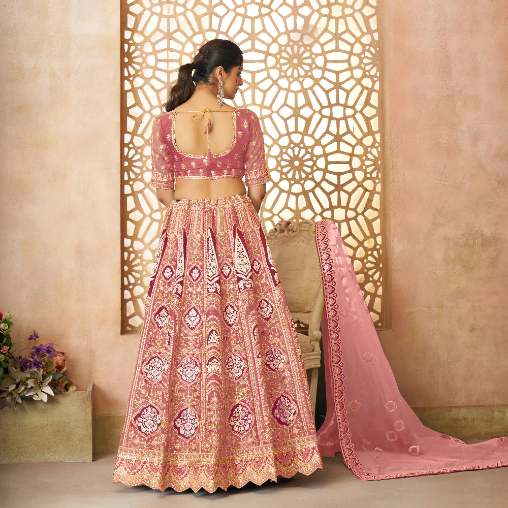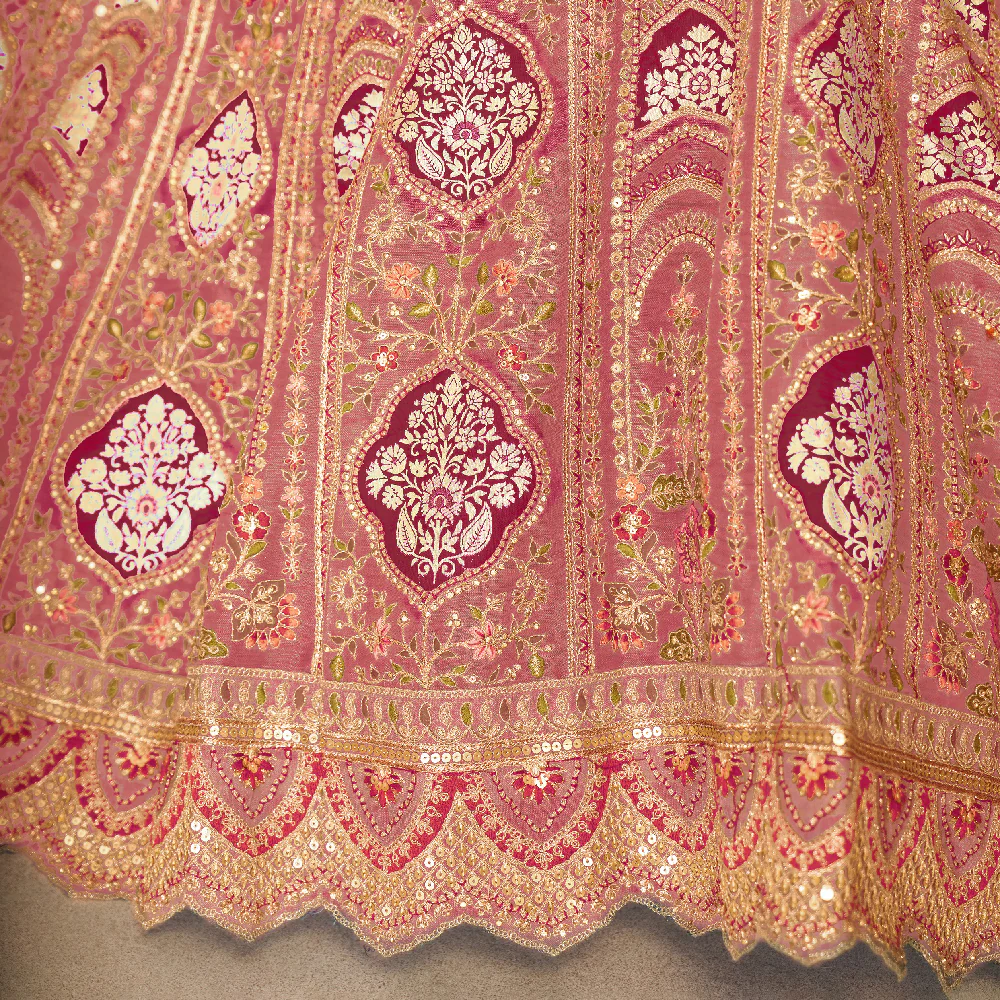 🌸 Pink Aari Embroidered Banarasi Lehenga for Weddings