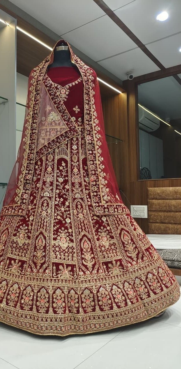 Offered in XS–XXL, this set features intricate threadwork, soft lining, and semi-stitched tailoring for easy fitting.