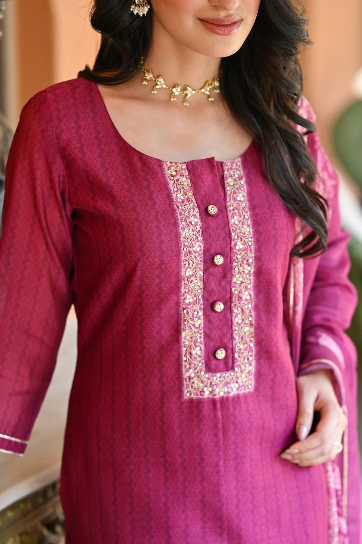 Women’s Rayon Slub Embroidered Kurta with Cotton Slub Pant And Chanderi Dupatta Sets