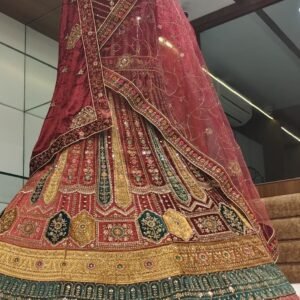 📏 Lehenga: 4m Banarasi Silk | Dupatta: 2.3m Banarasi Silk | Blouse: 1.2m Soft Net