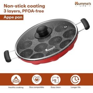 Bring traditional flavors to your kitchen with the Mumma’s Life Non-Stick 12 Cavity Appam Patra with Glass Lid! Perfect for appam, litti, or other delights, this versatile pan combines functionality with a sleek design.