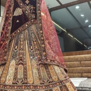 📏 Lehenga: 4m Banarasi Silk | Dupatta: 2.3m Banarasi Silk | Blouse: 1.2m Soft Net