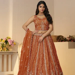 Rustic Orange Trending Color Bridal Lehenga Set